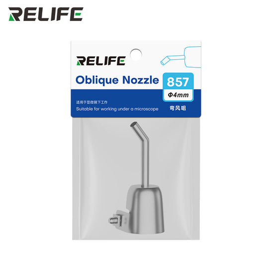RELIFE 857 Series 45° Bent Hot Air Gun Nozzle – Stainless Steel, Microscope-Ready, Leak-Free Design