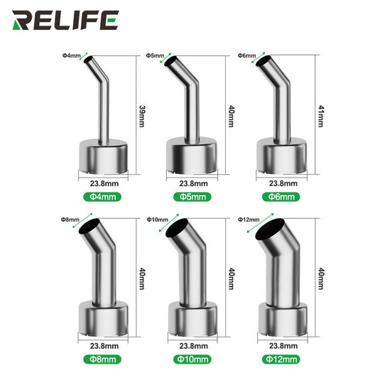 🔧 RELIFE 858 Series 45° Curved Hot Air Nozzle – Stainless Steel, Microscope-Compatible, Leak-Proof Design
