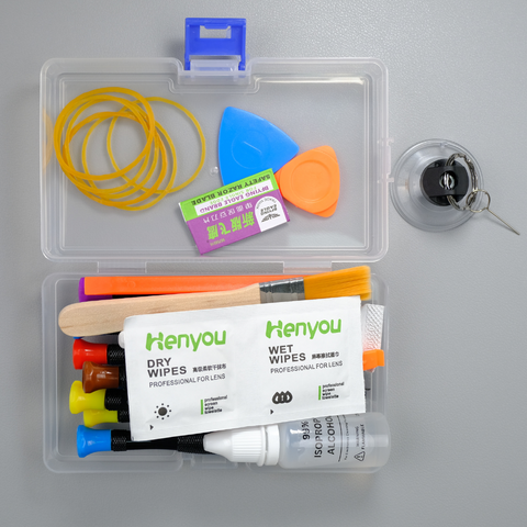 Fournitures bonus : l'alcool isopropylique facilite le nettoyage, les élastiques maintiennent les composants en place pendant les réparations et la colle B7000 assure un remontage sécurisé.